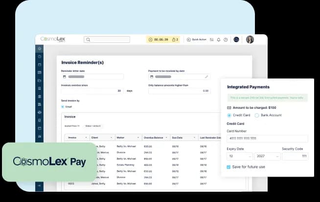 CosmoLex allows you to juggle separate systems, invoicing, and accounting with maximum efficiency for law firms.